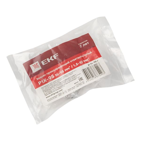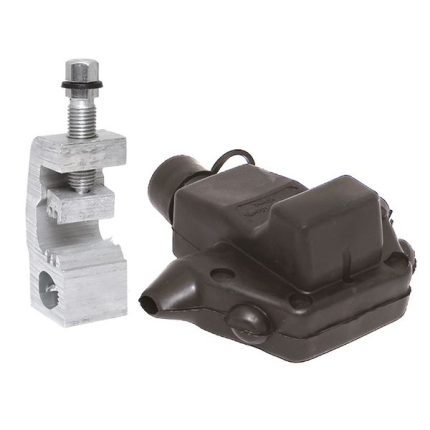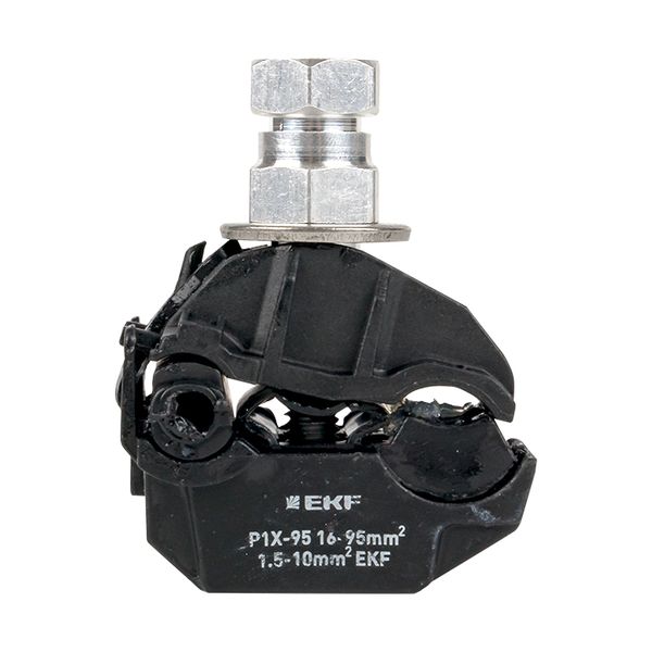 Зажим типа p-1x-95 предназначен для герметичного электрического соединения и ответвления изолированных абонентских проводов, а также проводников освещения от магистрали. Контакт с изолированным проводом обеспечивается прокалыванием изоляции. При достижении момента, необходимого для создания надежного электрического контакта проводов, происходит срыв головки болта. Контактные пластины изготовлены из алюминиевого сплава с лужением. На прокалывающие элементы нанесена контактная смазка. Болт изолирован от контактных деталей зажима. Зажим устойчив к ультрафиолетовому и солнечному излучению, высоким и низким температурам, коррозии и агрессивным атмосферным воздействиям.