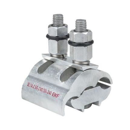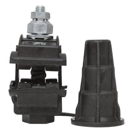 Зажим типа p-4x-95 предназначен для герметичного электрического соединения ответвительной линии СИП с магистралью. Контакт с изолированным проводом обеспечивается прокалыванием изоляции. При достижении момента, необходимого для создания надежного электрического контакта проводов, происходит срыв головки болта. Контактные пластины изготовлены из алюминиевого сплава. На прокалывающие элементы нанесена контактная смазка. Болт изолирован от контактных деталей зажима. Зажим устойчив к ультрафиолетовому и солнечному излучению, высоким и низким температурам, коррозии и агрессивным атмосферным воздействиям.