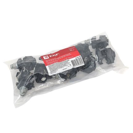 Зажим типа p-5x-95 предназначен для герметичного электрического соединения ответвительной линии СИП с магистралью. Контакт с изолированным проводом обеспечивается прокалыванием изоляции. При достижении момента, необходимого для создания надежного электрического контакта проводов, происходит срыв головки болта. Контактные пластины изготовлены из алюминиевого сплава. На прокалывающие элементы нанесена контактная смазка. Болт изолирован от контактных деталей зажима. Зажим устойчив к ультрафиолетовому и солнечному излучению, высоким и низким температурам, коррозии и агрессивным атмосферным воздействиям.
